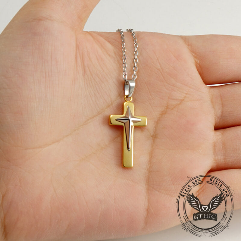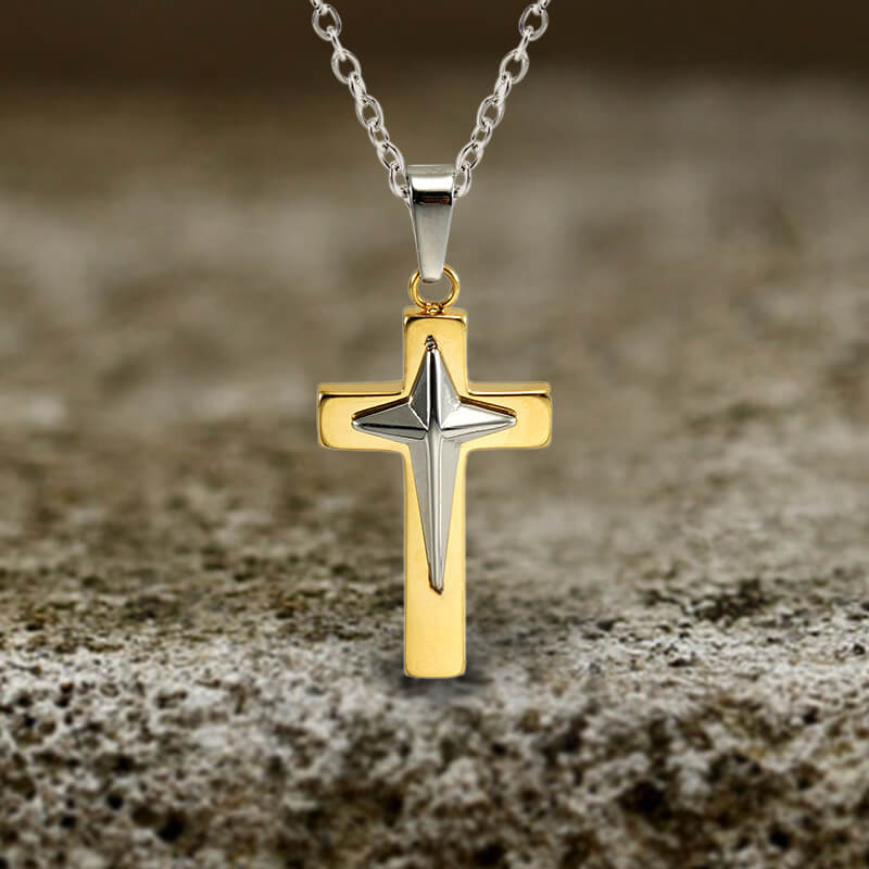 This is a classic cross necklace, the gold part is electroplated 18K gold, and a four-pointed star is decorated on the cross. The durable stainless steel construction ensures that this bracelet will last for years to come, while the sleek design makes it a stylish accessory to any ensemble while also showing what you believe in. Get yours now!