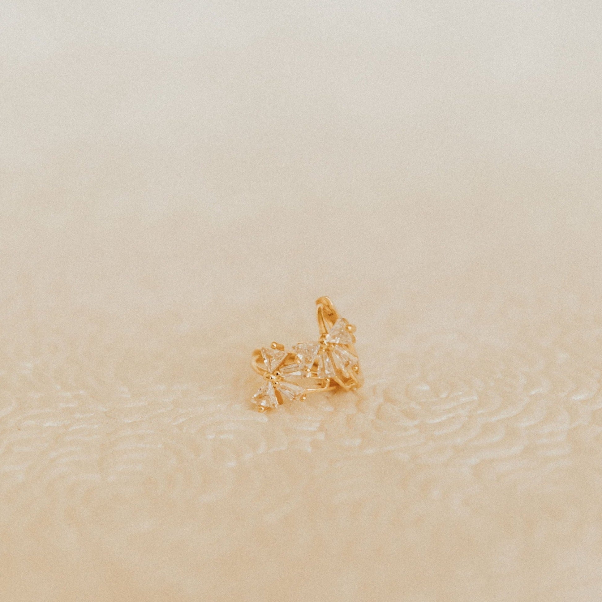 These Lucy Diamond Bow Hoops are the perfect accessory to complete any outfit. They are sterling silver based gold vermeil and are hypoallergenic, tarnish and wear resistant, and perfect for sensitive ears. They measure a dainty 10mm and are perfect for a first piercing or in an earring stack.