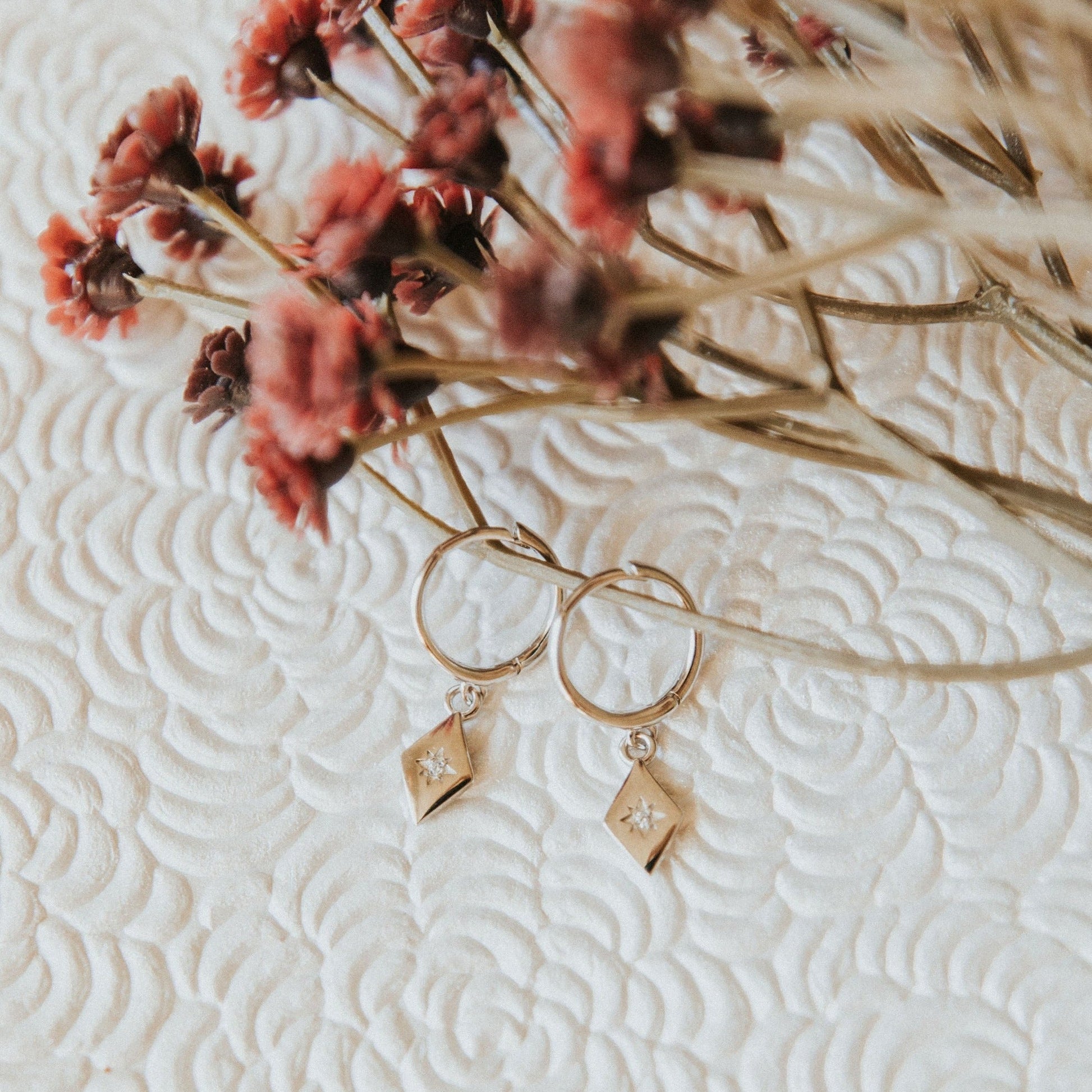 The Nova Hoops (featuring the North Star) are the perfect accessory to complete any outfit. Available in sterling silver and gold vermeil, they are hypoallergenic, tarnish and wear resistant, and perfect for sensitive ears. They have a huggie style closure and are perfect for a first piercing or in an earring stack.